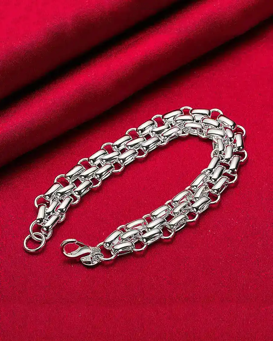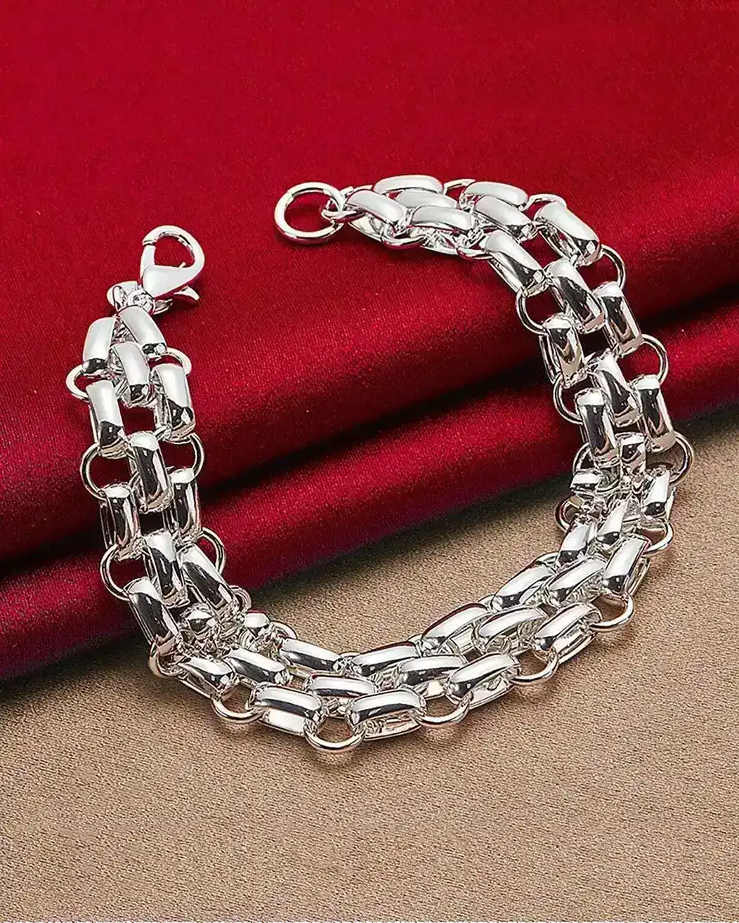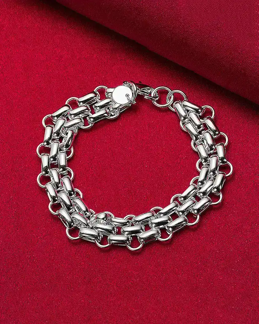 Elegancka bransoletka na rękę ze stali nierdzewnej platerowana srebrem 925. Trzy błyszczące warstwy, regulowane zapięcie i gwarancja trwałości. Szybka wysyłka, niższa cena!