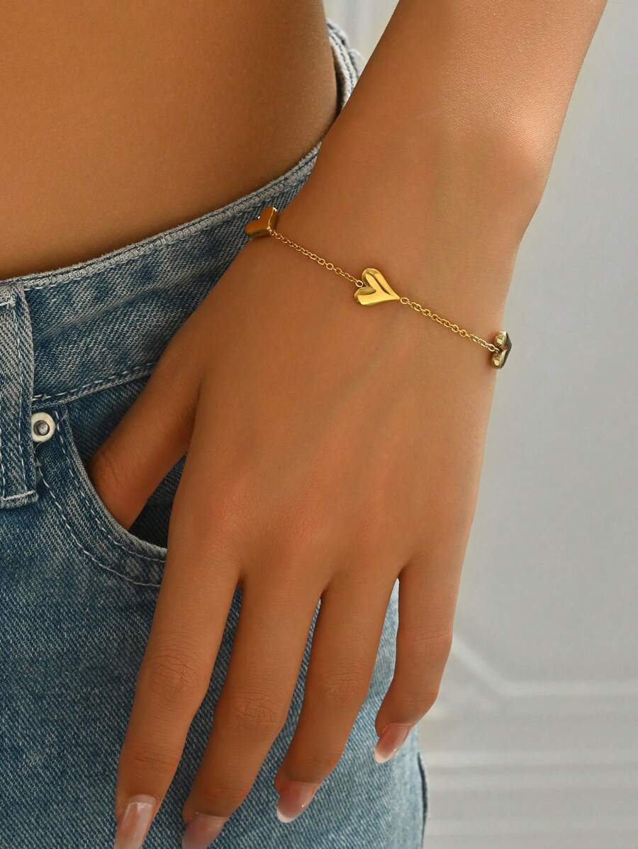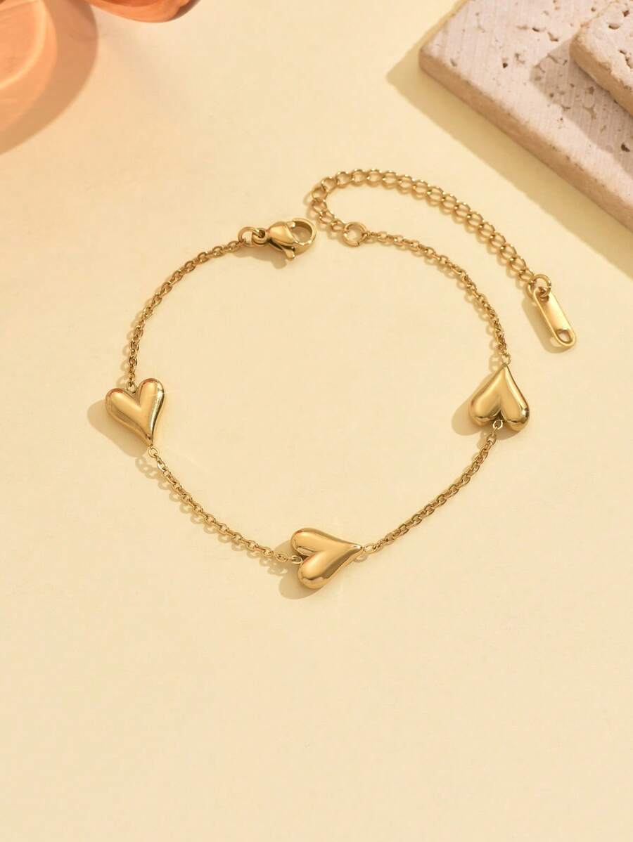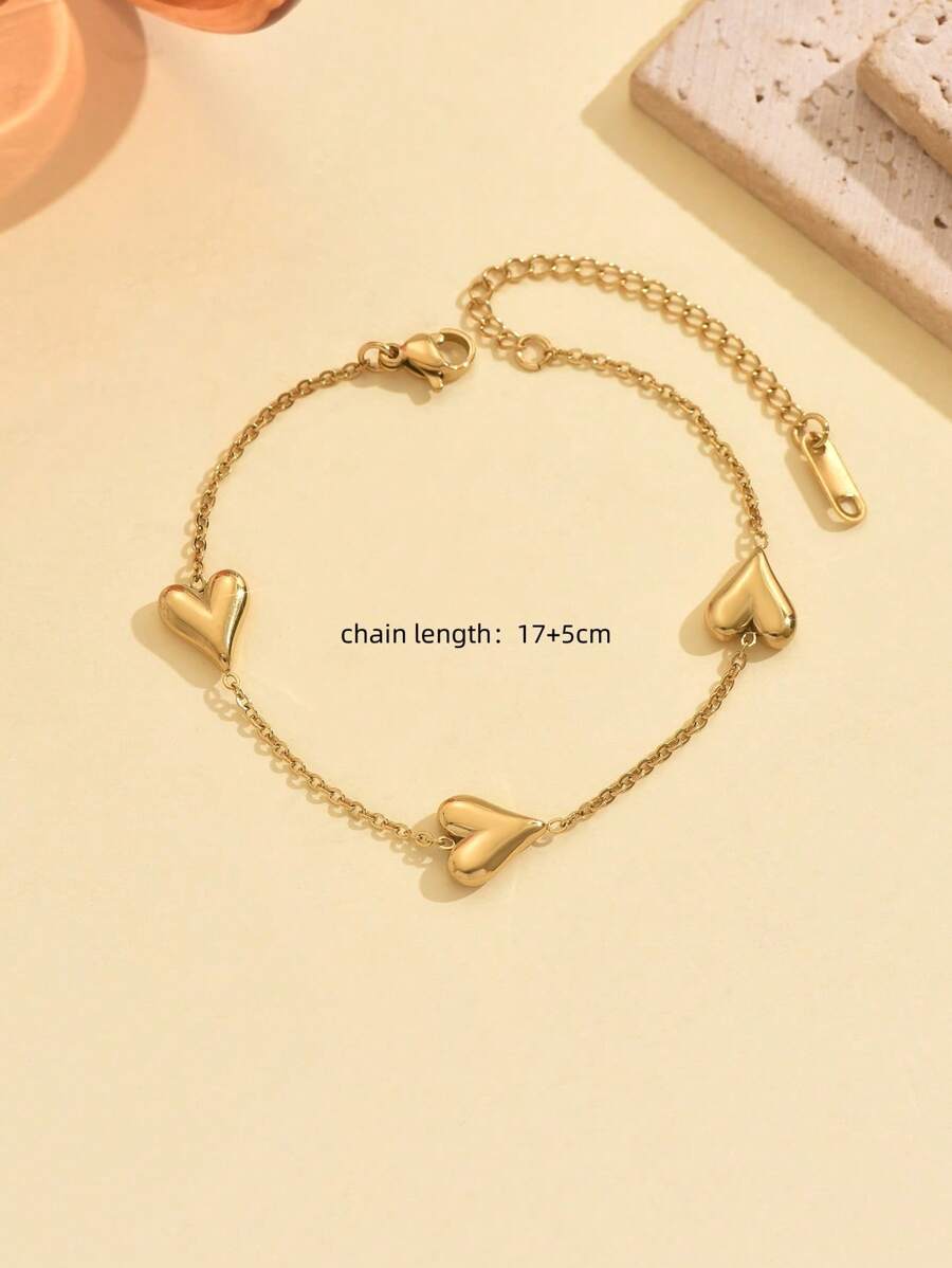 Delikatna i romantyczna bransoletka z motywem serca. Regulowany rozmiar (17-22 cm) zapewnia idealne dopasowanie. Wykonana ze stali szlachetnej w kolorze złotym. Idealna na co dzień i na specjalne okazje. Hipoalergiczna i trwała.