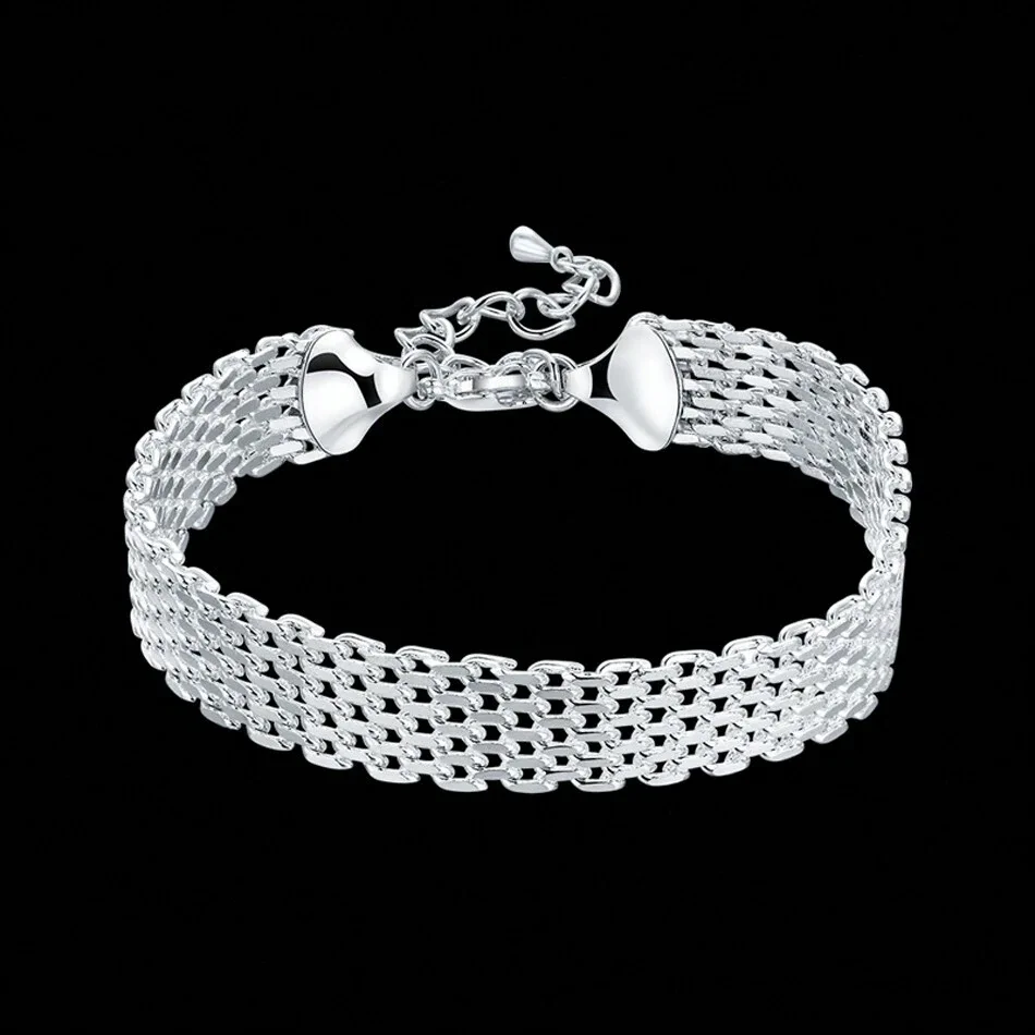 Efektowna bransoletka ze stali szlachetnej w kolorze srebrnym z szerokim plecionym wzorem. Regulowane zapięcie, hipoalergiczny materiał i eleganckie wykonanie sprawiają, że to idealna biżuteria na co dzień i specjalne okazje. Zobacz pełny opis i odkryj wszystkie zalety tej wyjątkowej bransoletki!