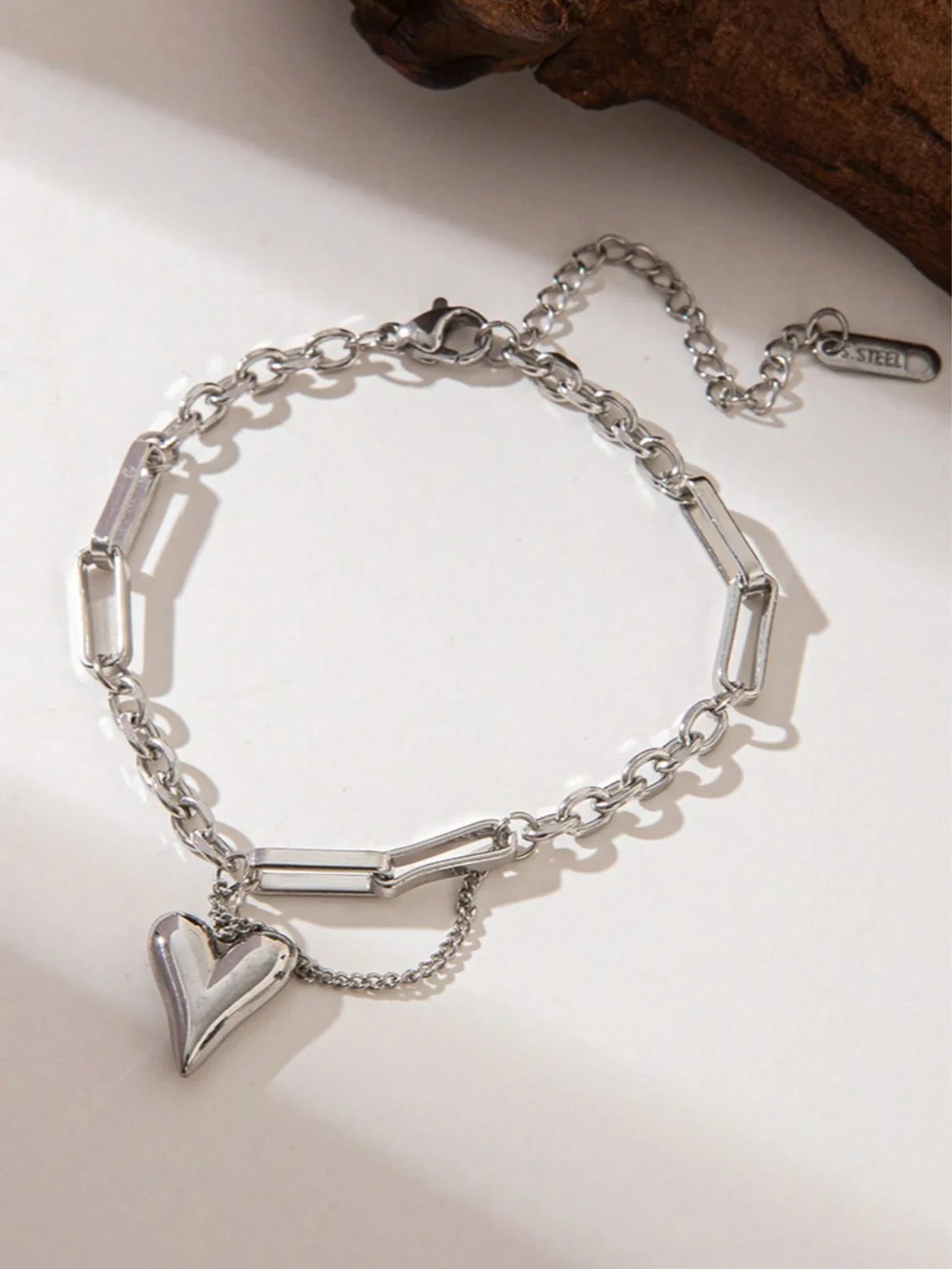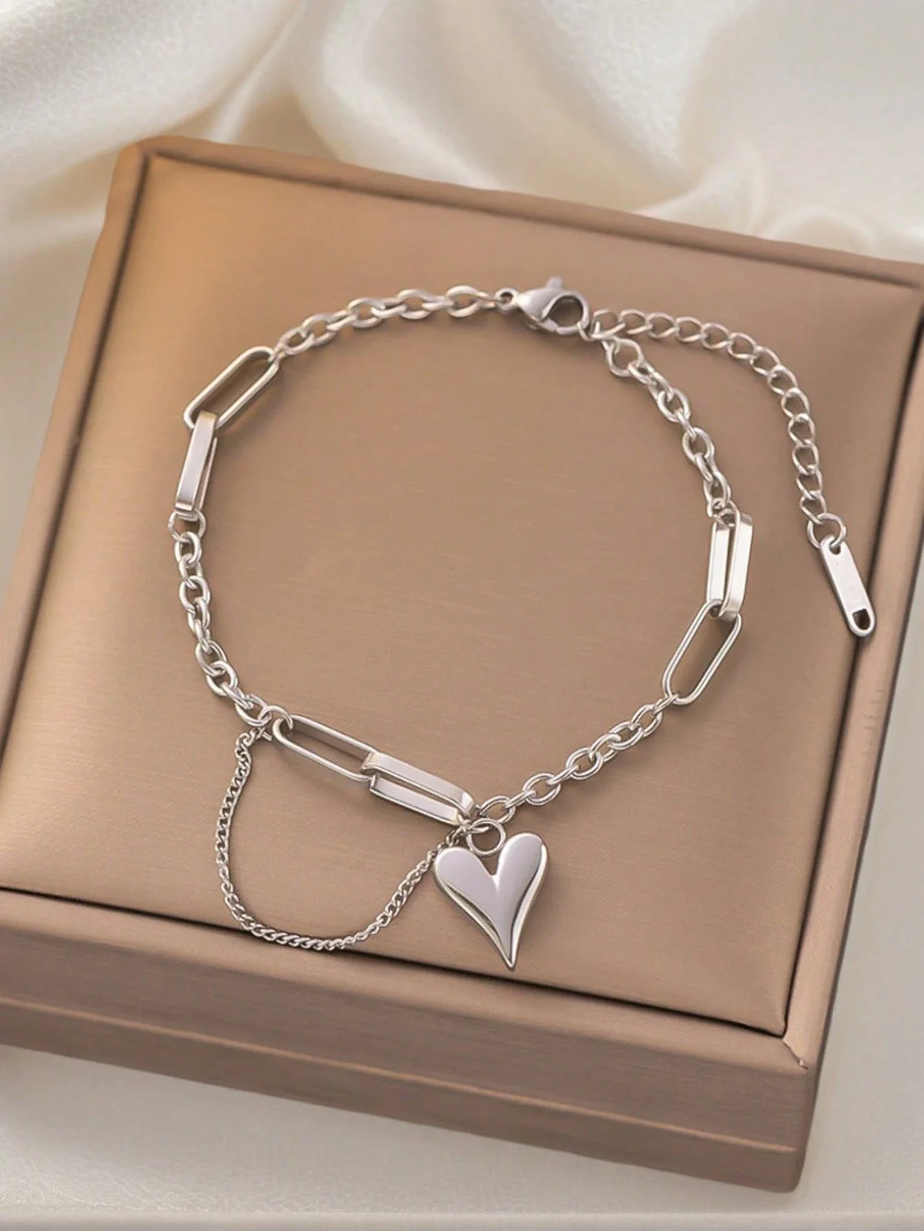 ❤️ Romantyczna Bransoletka ze Stali z Zawieszką Serce