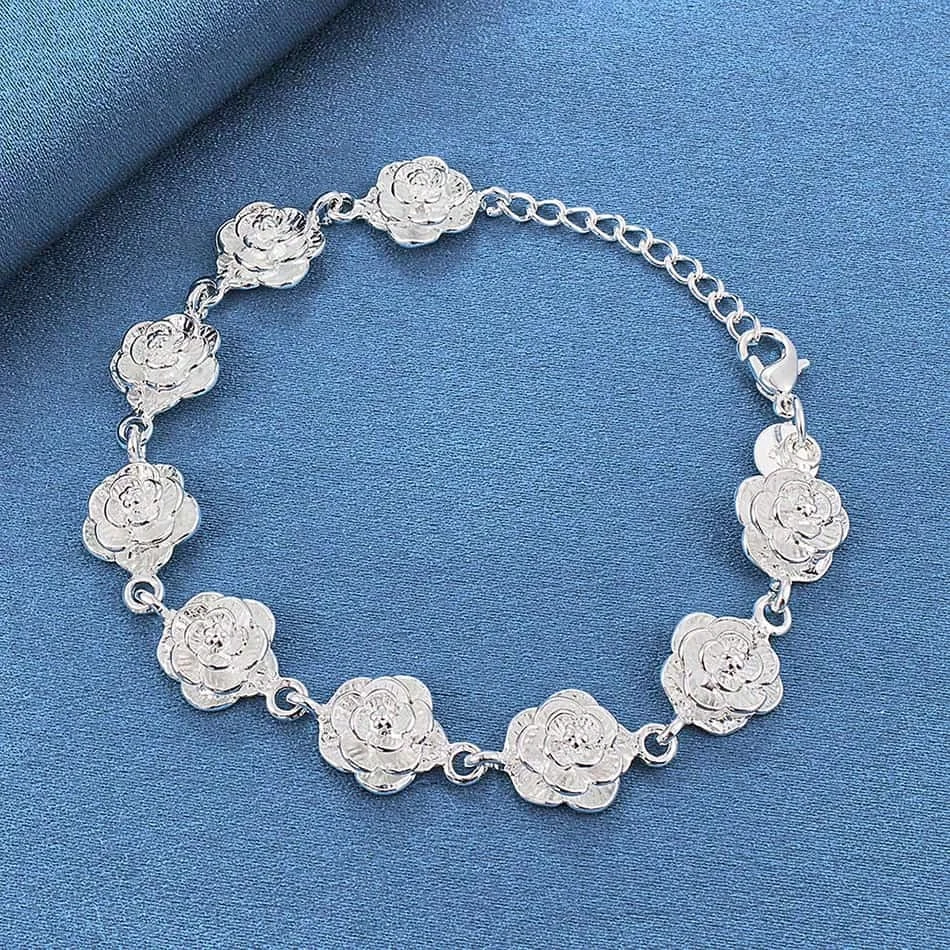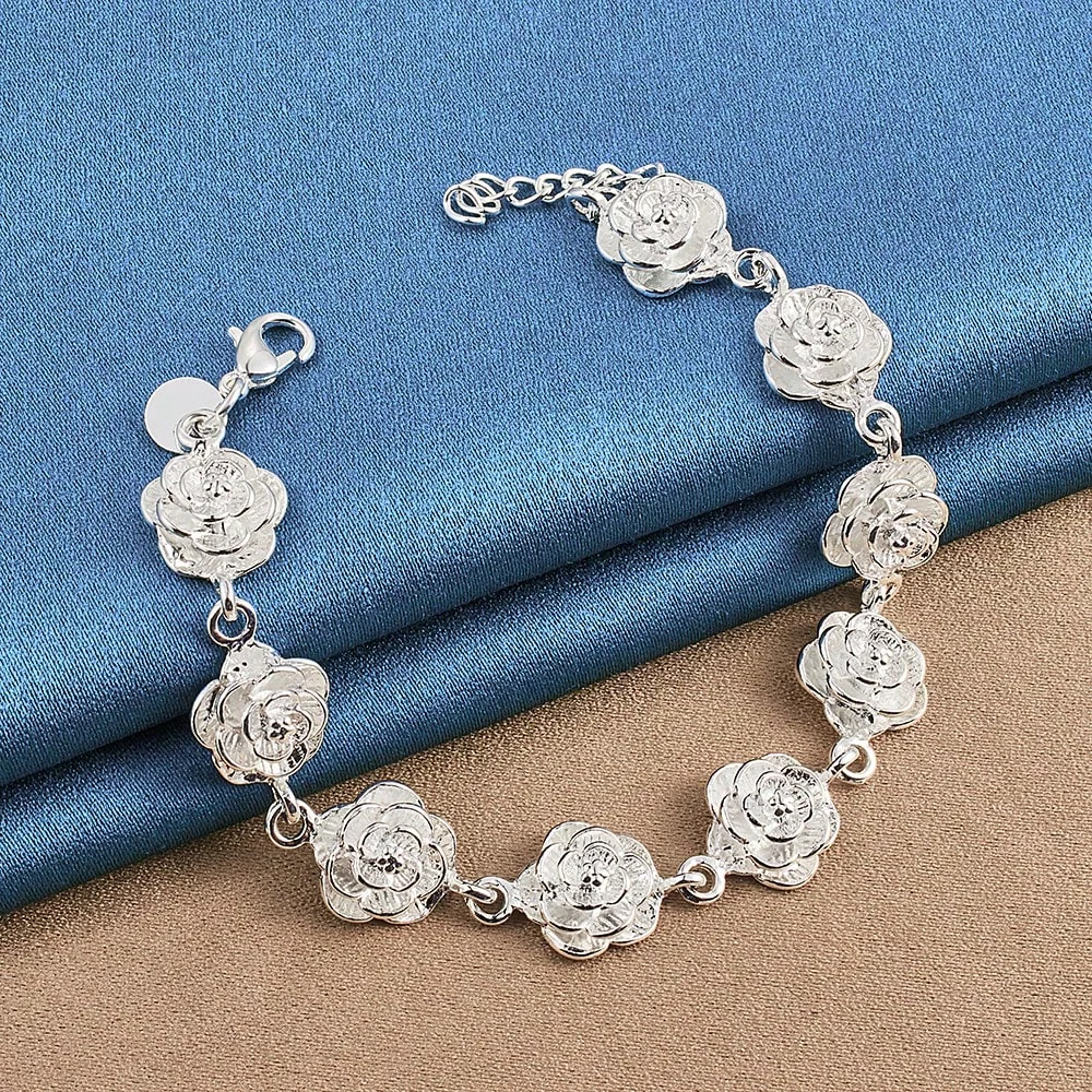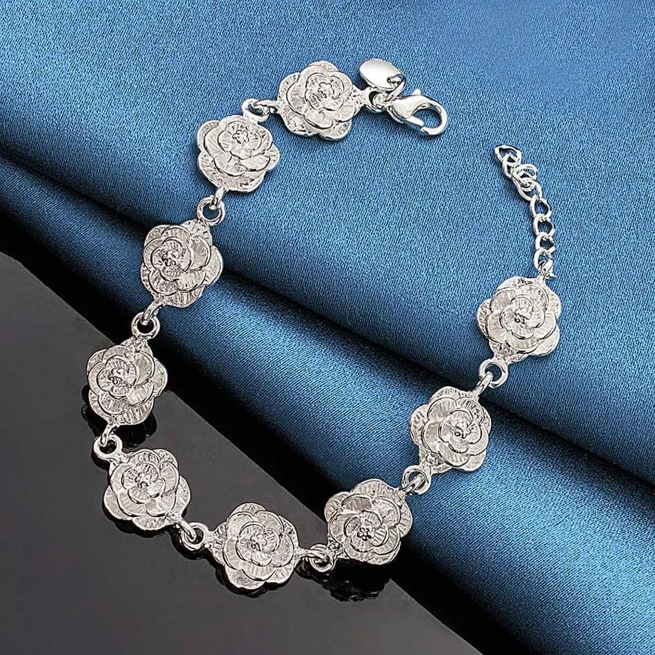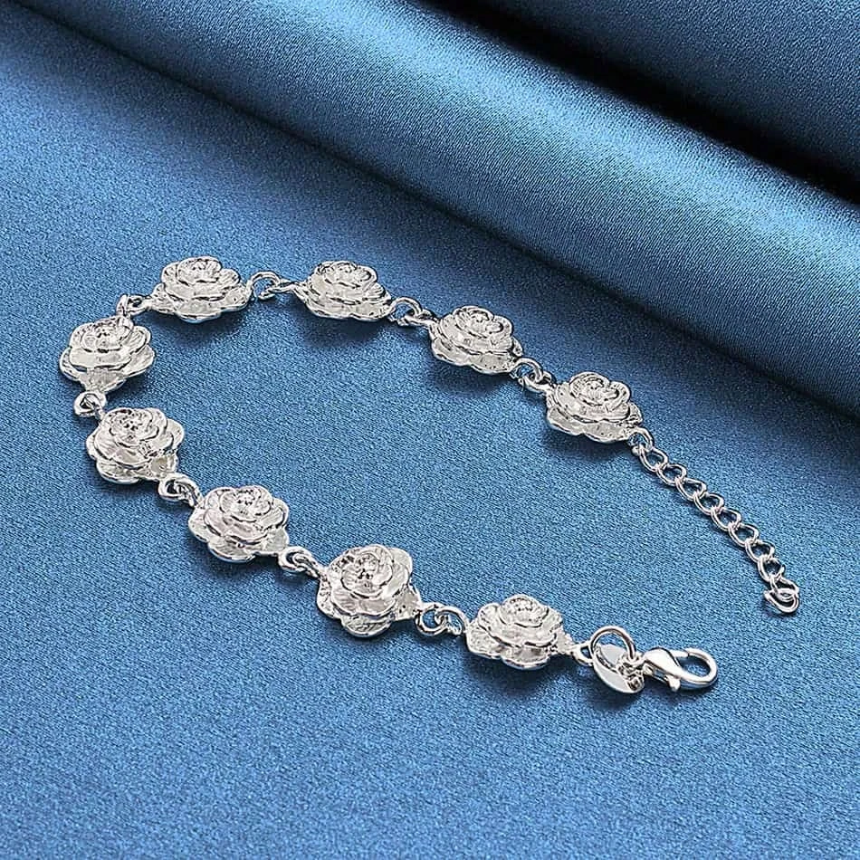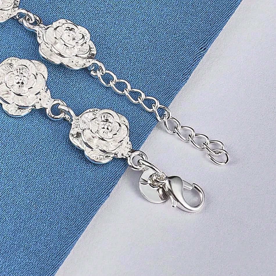 Ta elegancka bransoletka ze stali szlachetnej w kolorze srebrnym z delikatną zawieszką w kształcie róży to kwintesencja kobiecości i ponadczasowej elegancji. Subtelny kwiatowy motyw sprawia, że biżuteria ta doskonale pasuje zarówno do codziennych, jak i wieczorowych stylizacji.