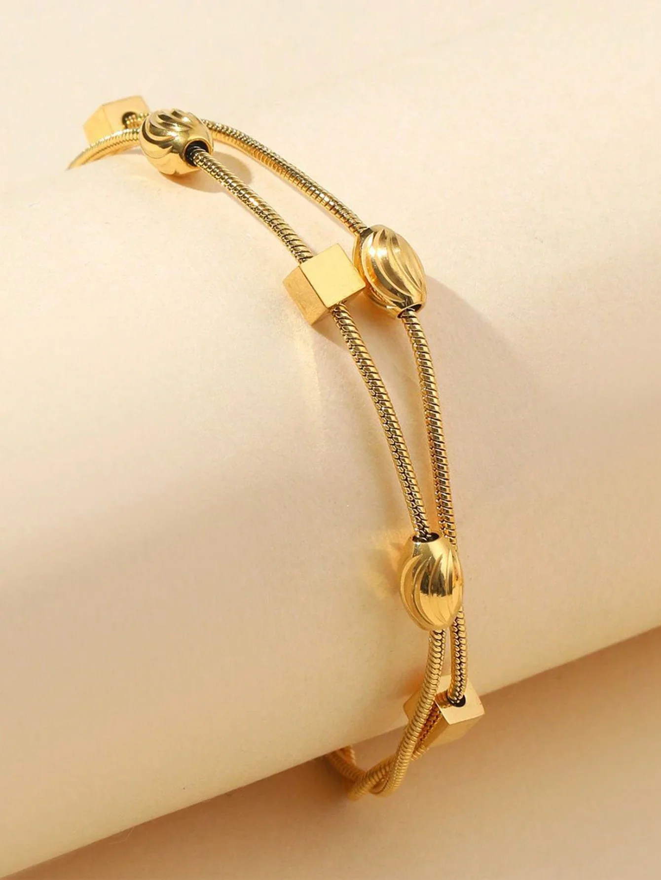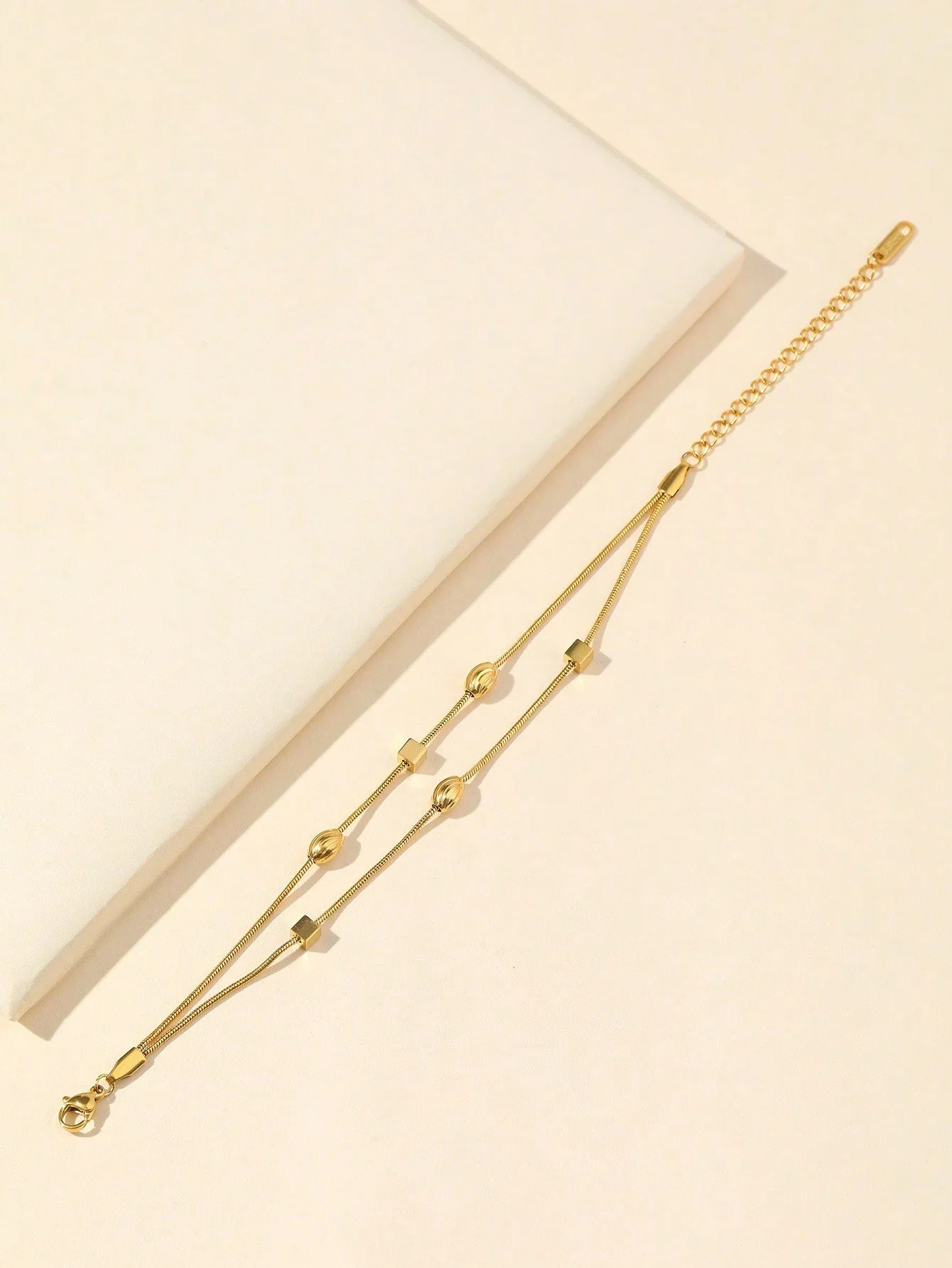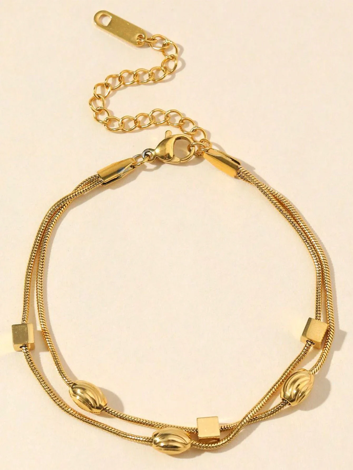 ❤️ Bransoletka Geometryczna z Podwójnym Łańcuszkiem w kolorze złotym