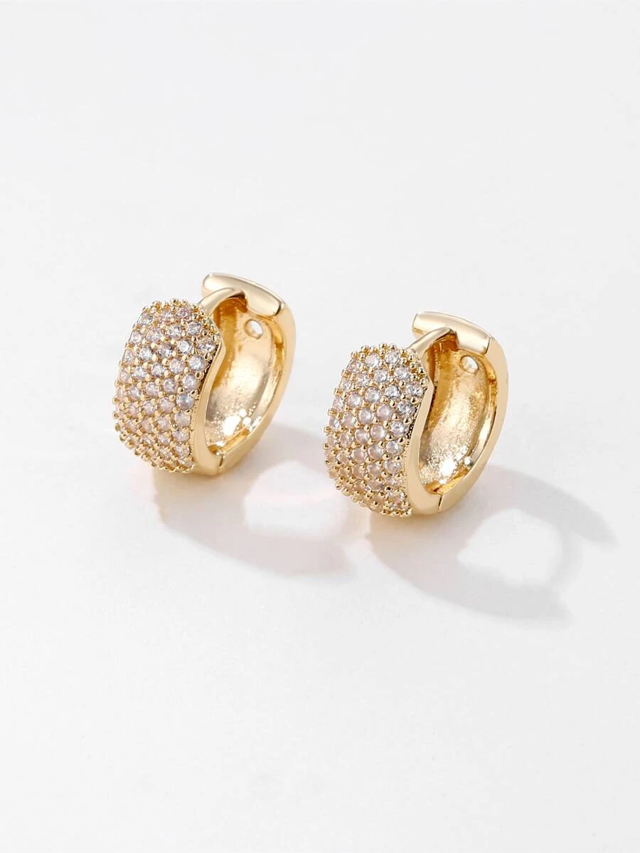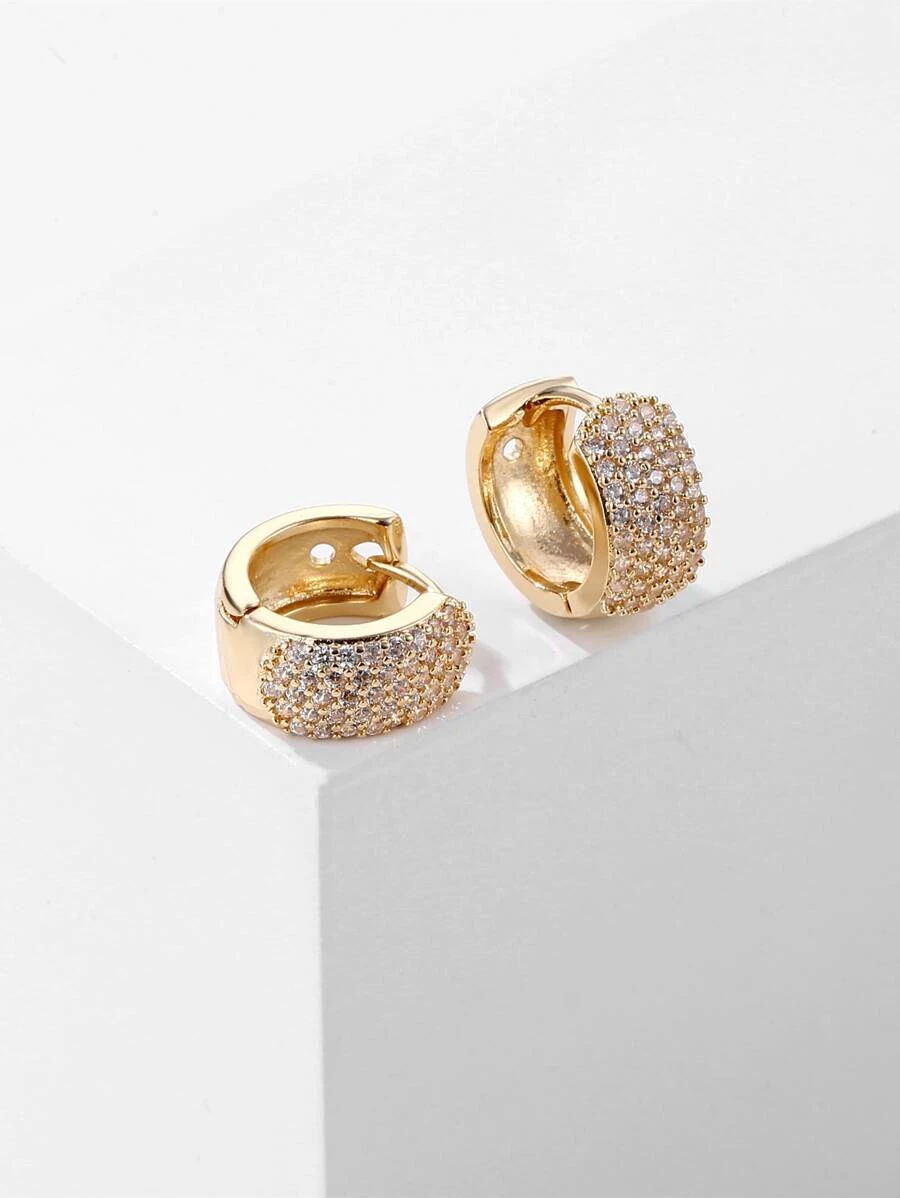Stylowe kolczyki w kształcie obręczy, zdobione sześciennymi cyrkoniami. Nowoczesny design i uniwersalny kolor złoty. Idealne na co dzień i na specjalne okazje. Hipoalergiczne i trwałe. Dodaj odrobinę blasku swojej stylizacji już dziś!