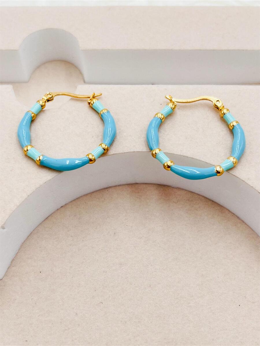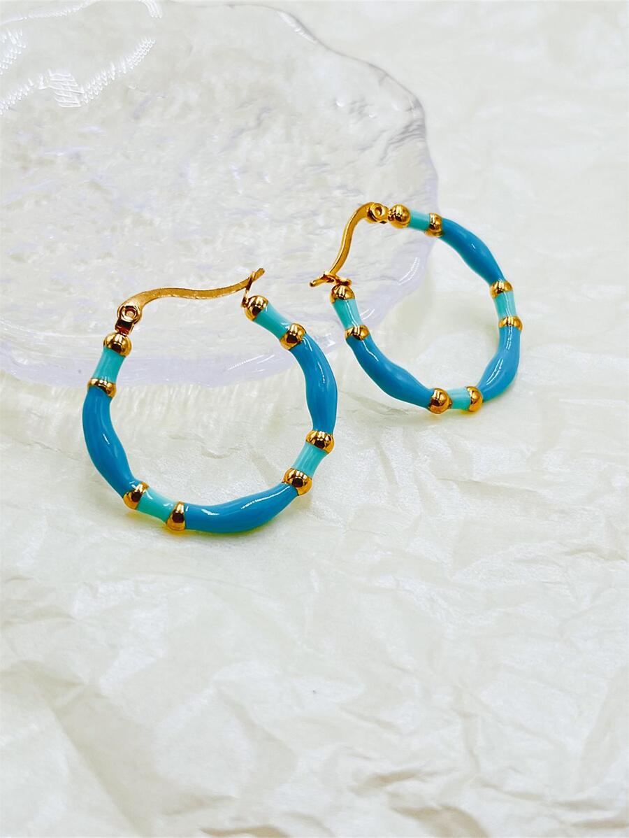 Napisz pierwszą opinię o „Kolczyki Koła Turkusowe emaliowane ze stali szlachetnej w kolorze złotym”