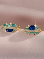 Dodaj blasku każdej stylizacji! Te kolczyki koła w kolorze złotym z niebieskimi i turkusowymi cyrkoniami to połączenie elegancji z nowoczesnym designem. Wykonane ze stali szlachetnej, zapewniają trwałość i komfort noszenia przez cały dzień.