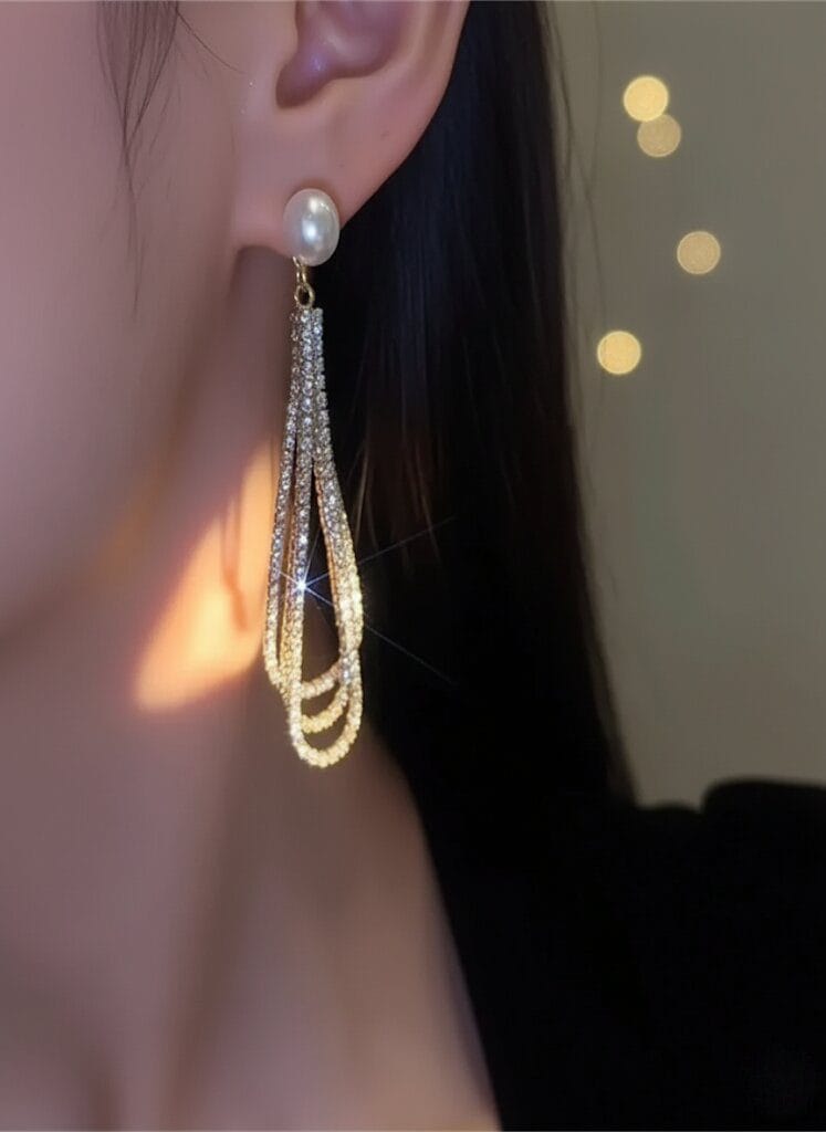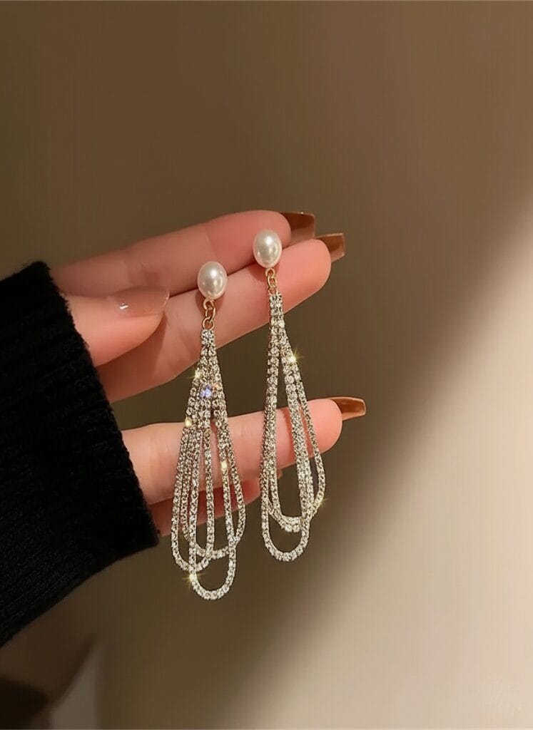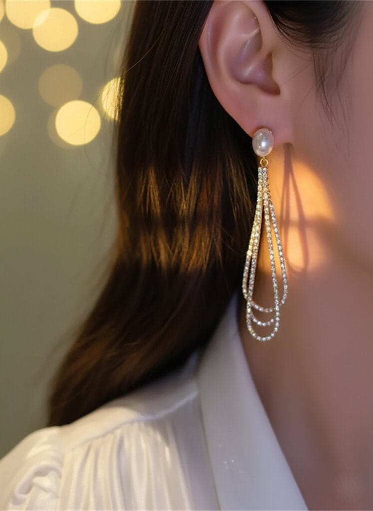 Odkryj zjawiskowe, długie kolczyki z perłami i kryształkami krople wody ze stali nierdzewnej z frędzlami, kryształkami i perłami. Idealne, by dodać blasku Twojej stylizacji. Szybka wysyłka i atrakcyjna cena!