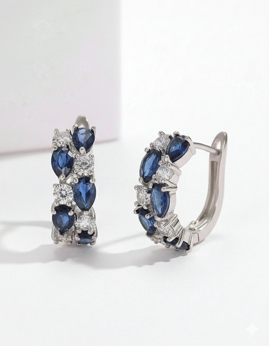 Te olśniewające kolczyki w kształcie koła, ozdobione cyrkoniami kubicznymi – niebieskimi w formie kropelek przeplatanymi z lśniącymi białymi cyrkoniami. Pozycja obowiązkowa dla kobiet, które pragną wyrazić swoją elegancję i unikalny styl. Ich wyrafinowany design oraz intensywny błękit kamieni dodadzą każdej stylizacji wyjątkowego charakteru i magnetycznego blasku.