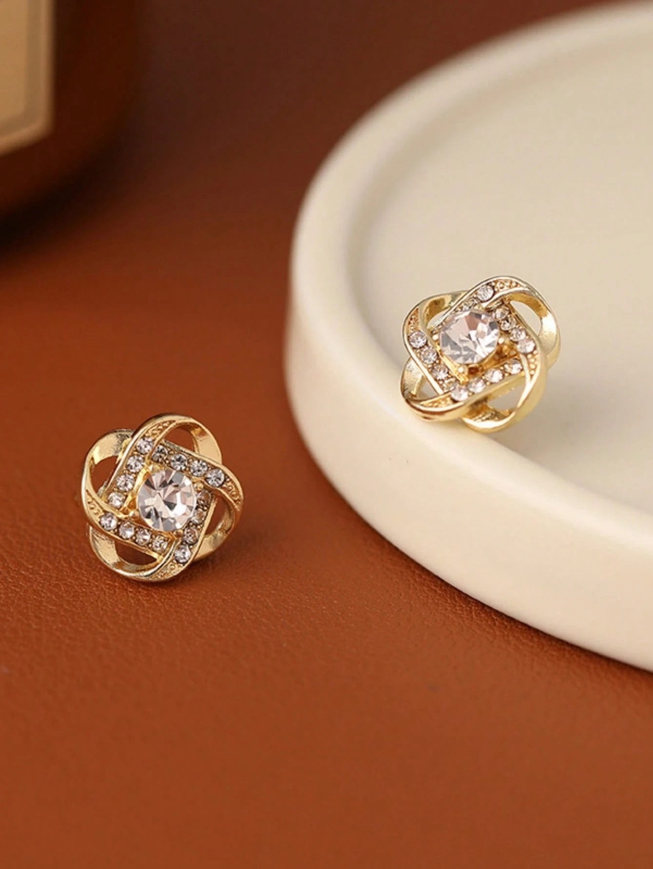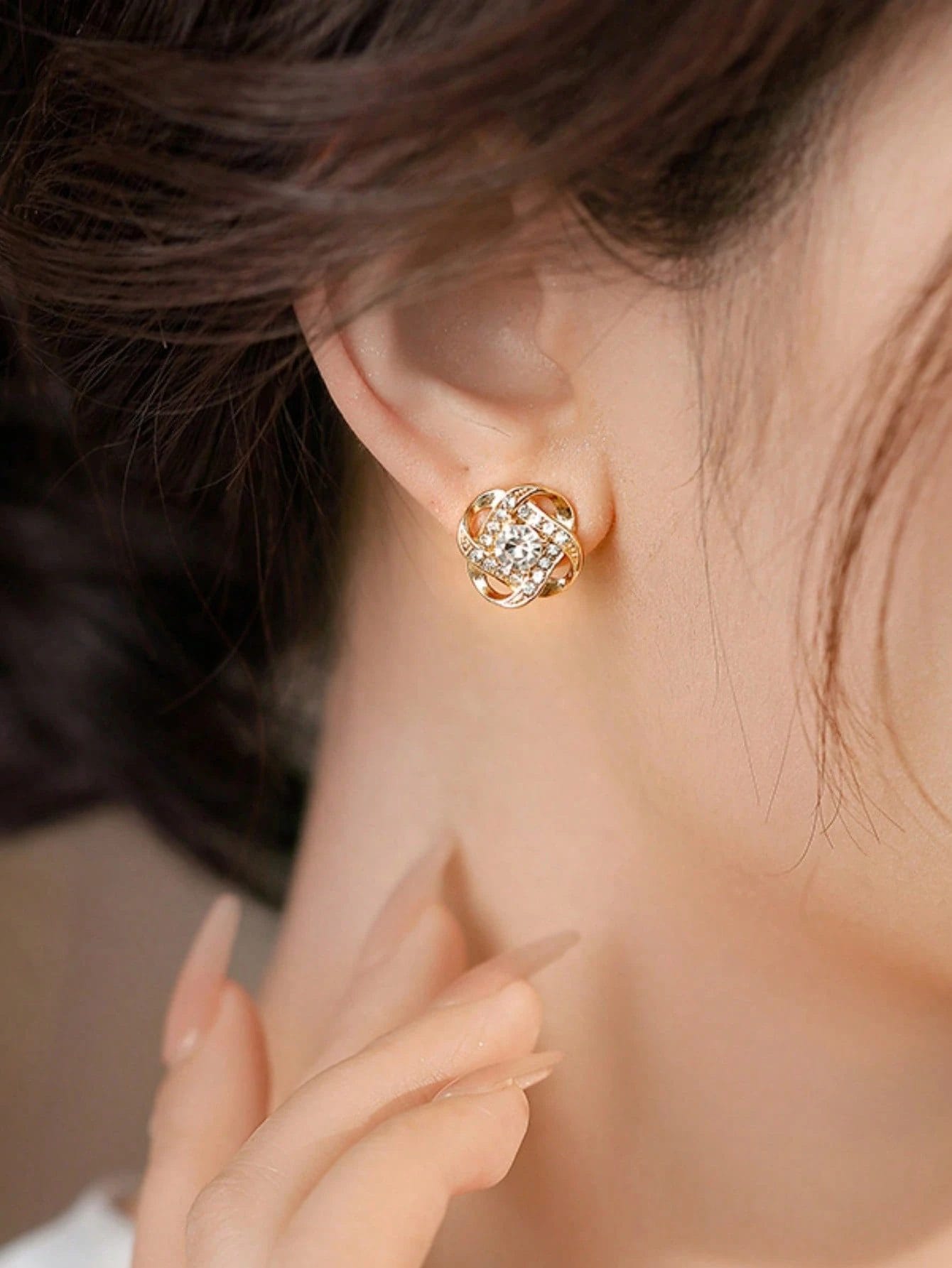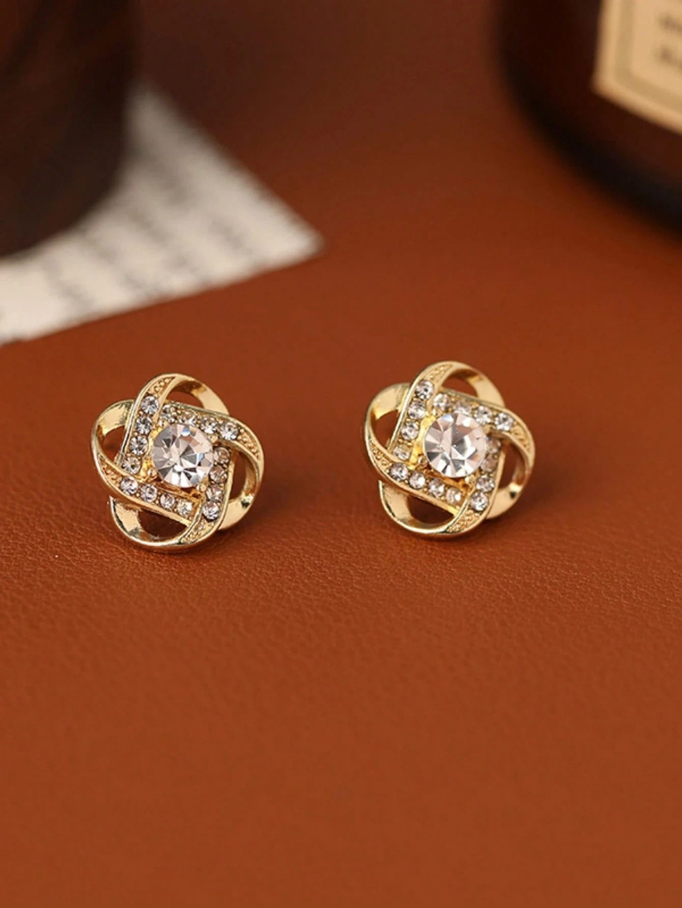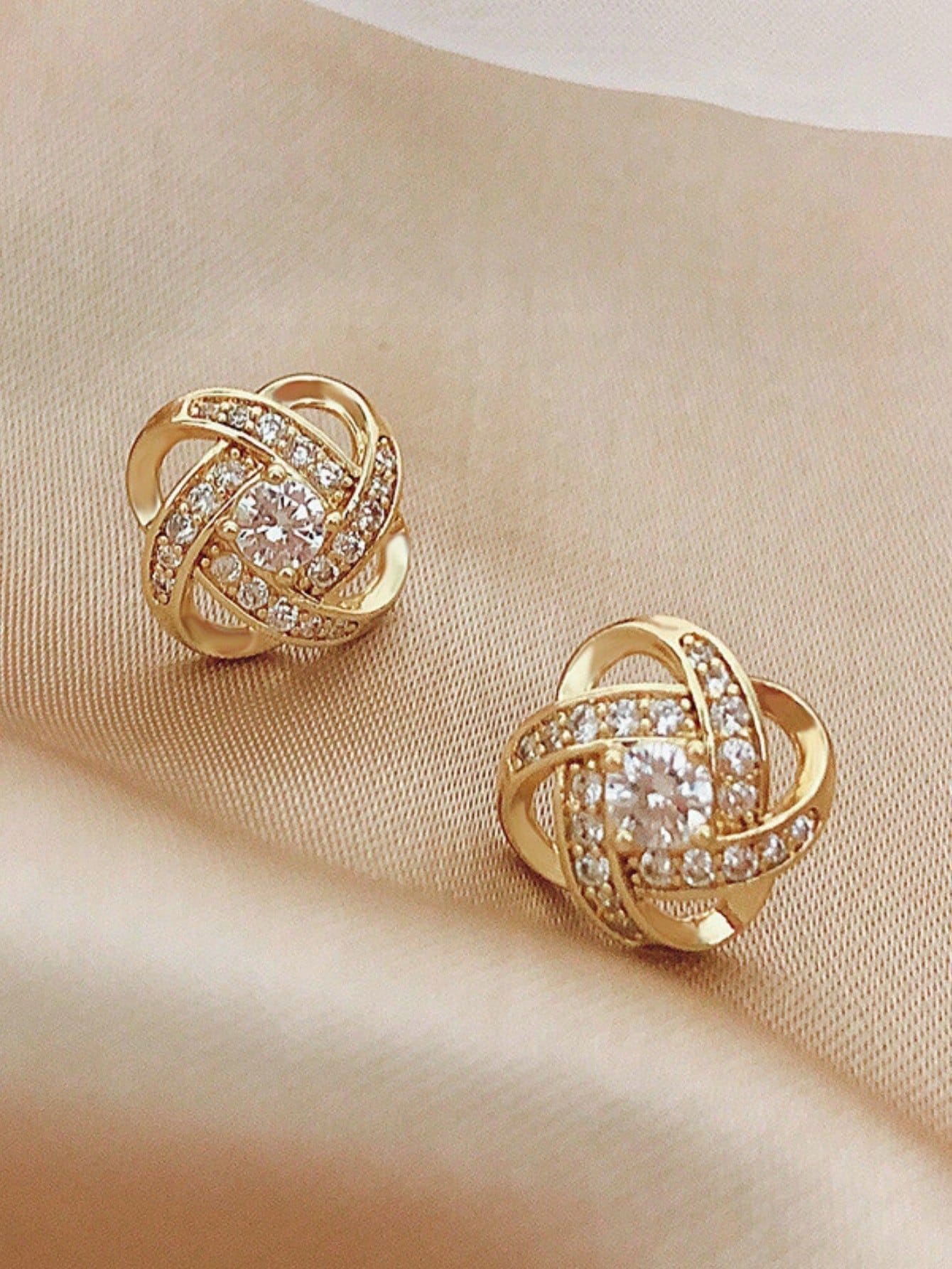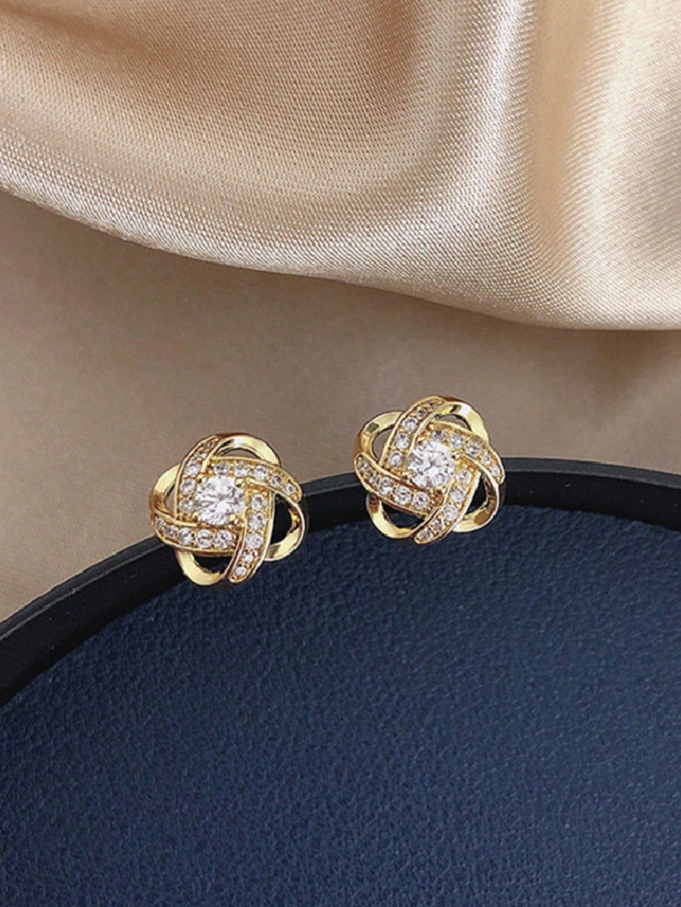 Damskie Kolczyki Sztyfty Złoty Węzeł z Cyrkoniami