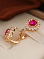 Te przepiękne kolczyki to połączenie ponadczasowej elegancji z wyrazistym akcentem kolorystycznym. Centralny czerwony kamień w owalnej oprawie otoczony aureolą lśniących białych cyrkonii tworzy efekt godny najpiękniejszej biżuterii. Złoty kolor podkreśla kobiecość i dodaje każdej stylizacji luksusowego blasku.