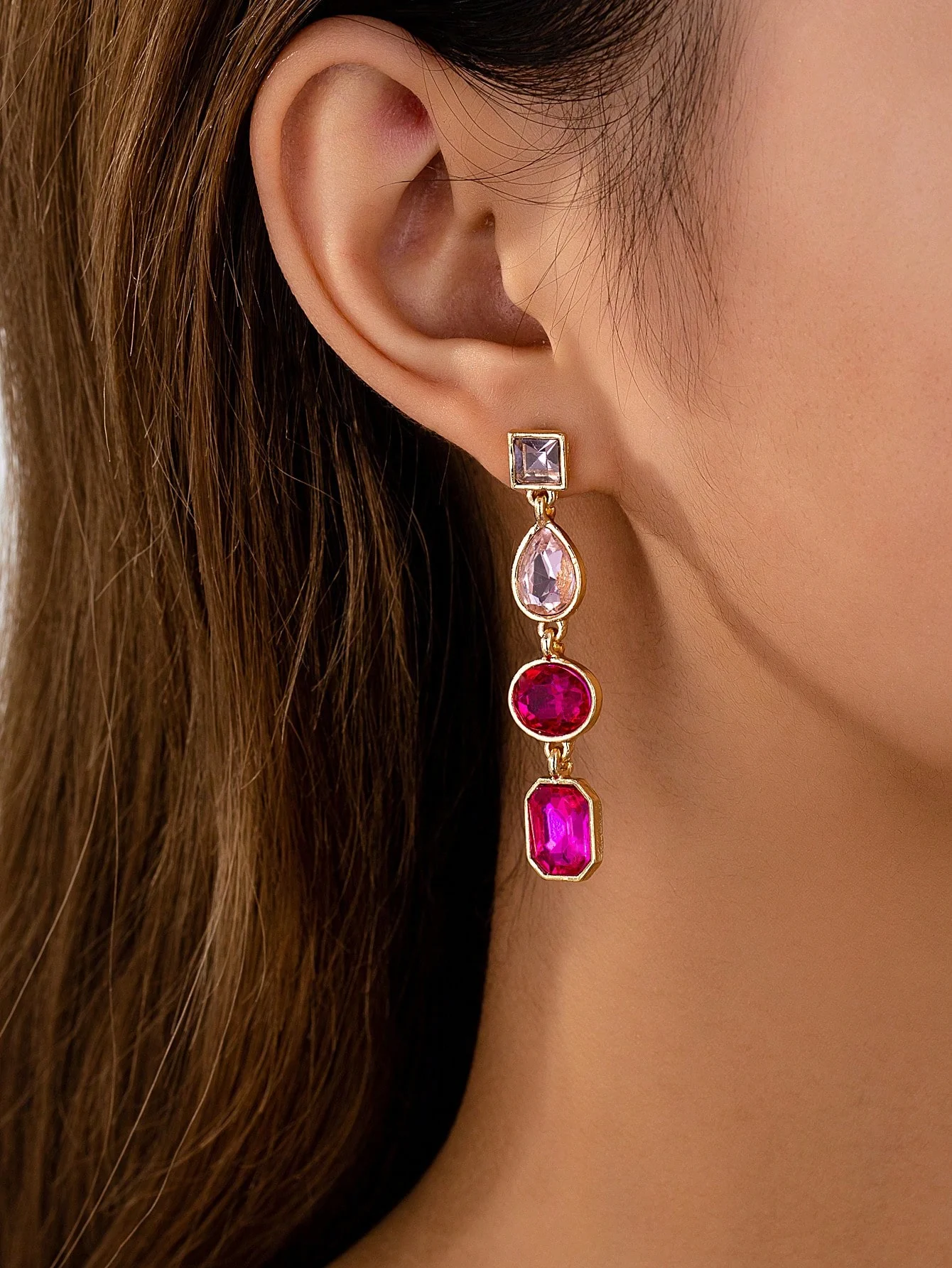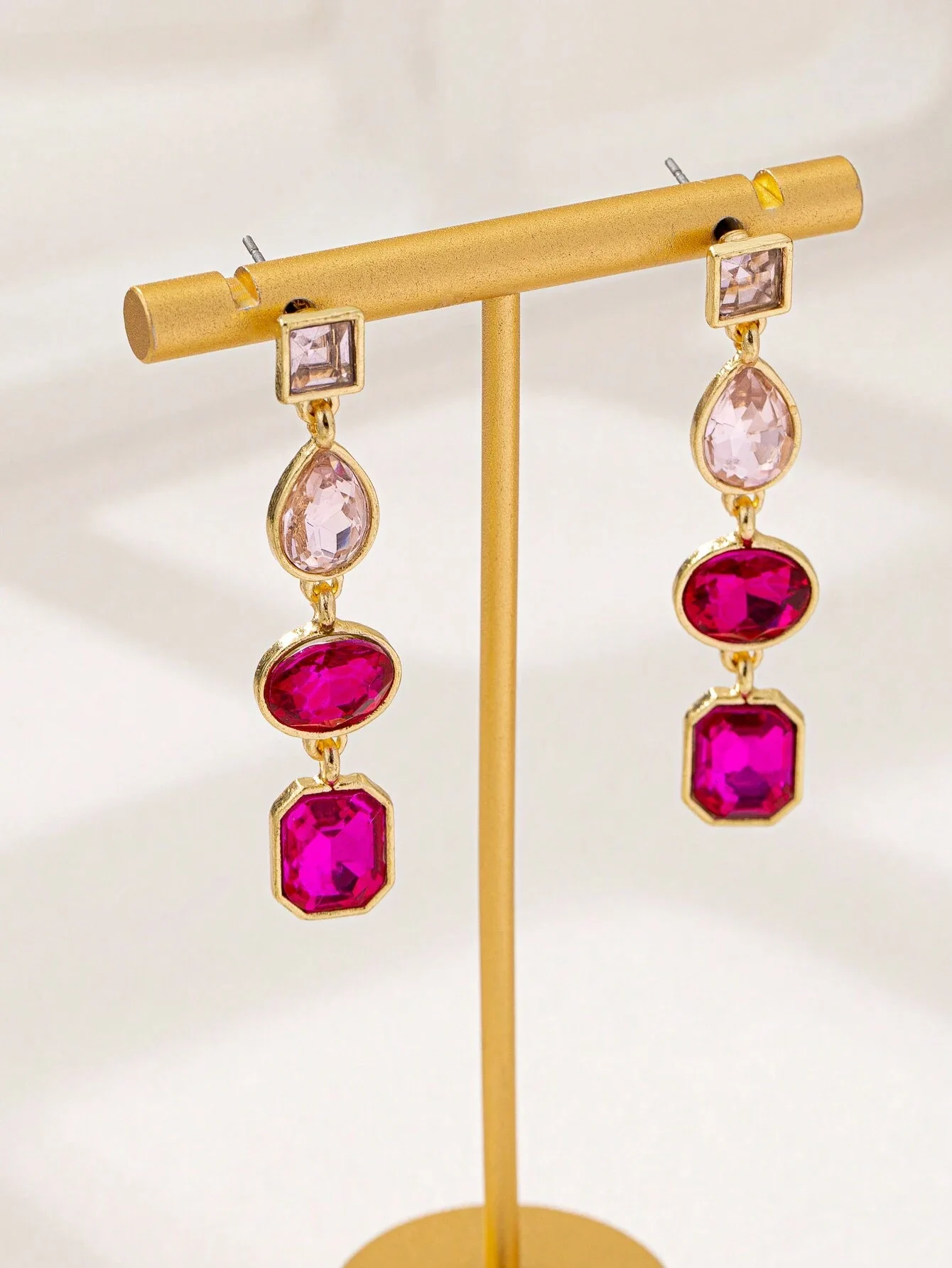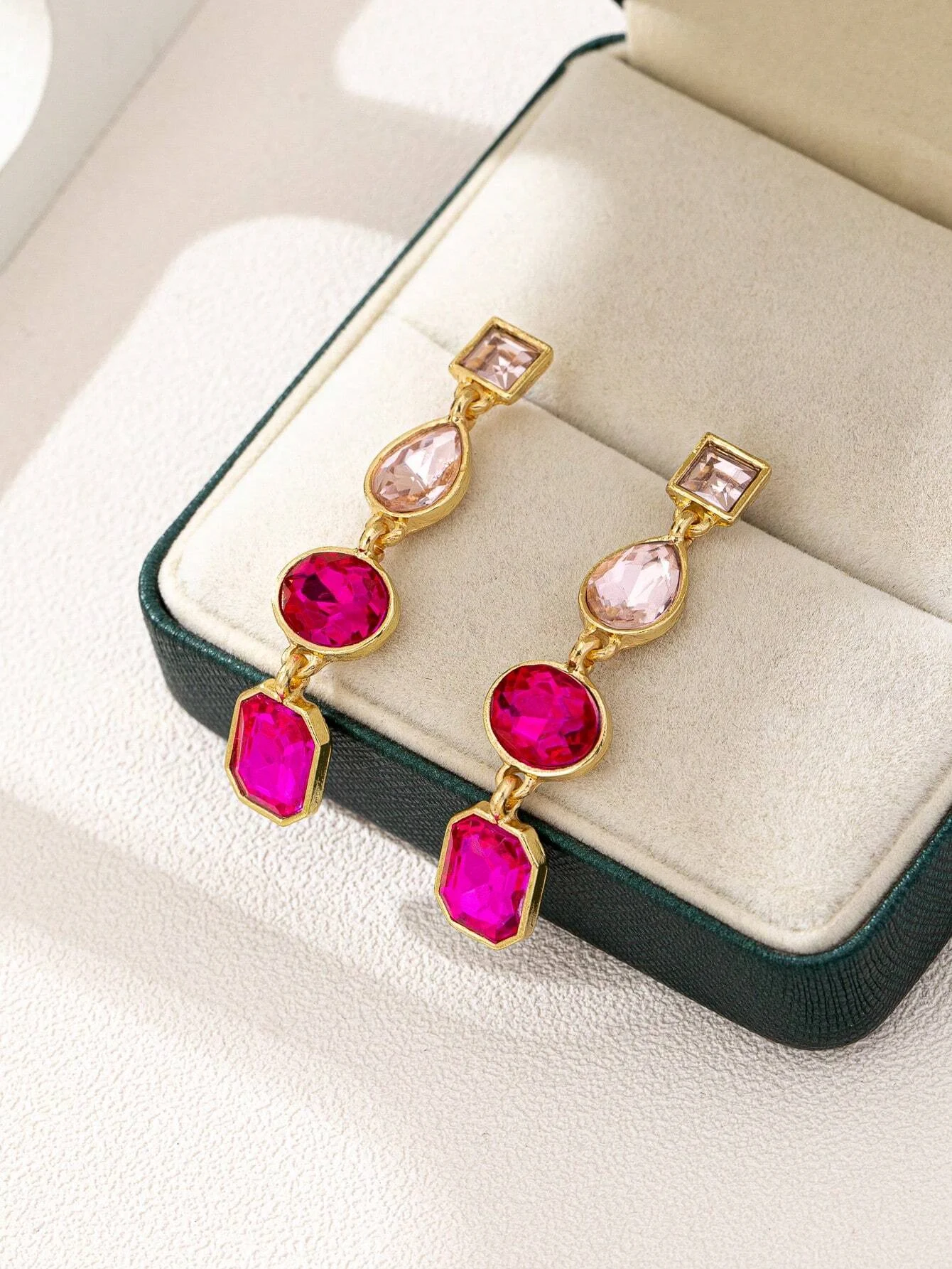 Eleganckie Kolczyki Długie Różowe Fuksja
