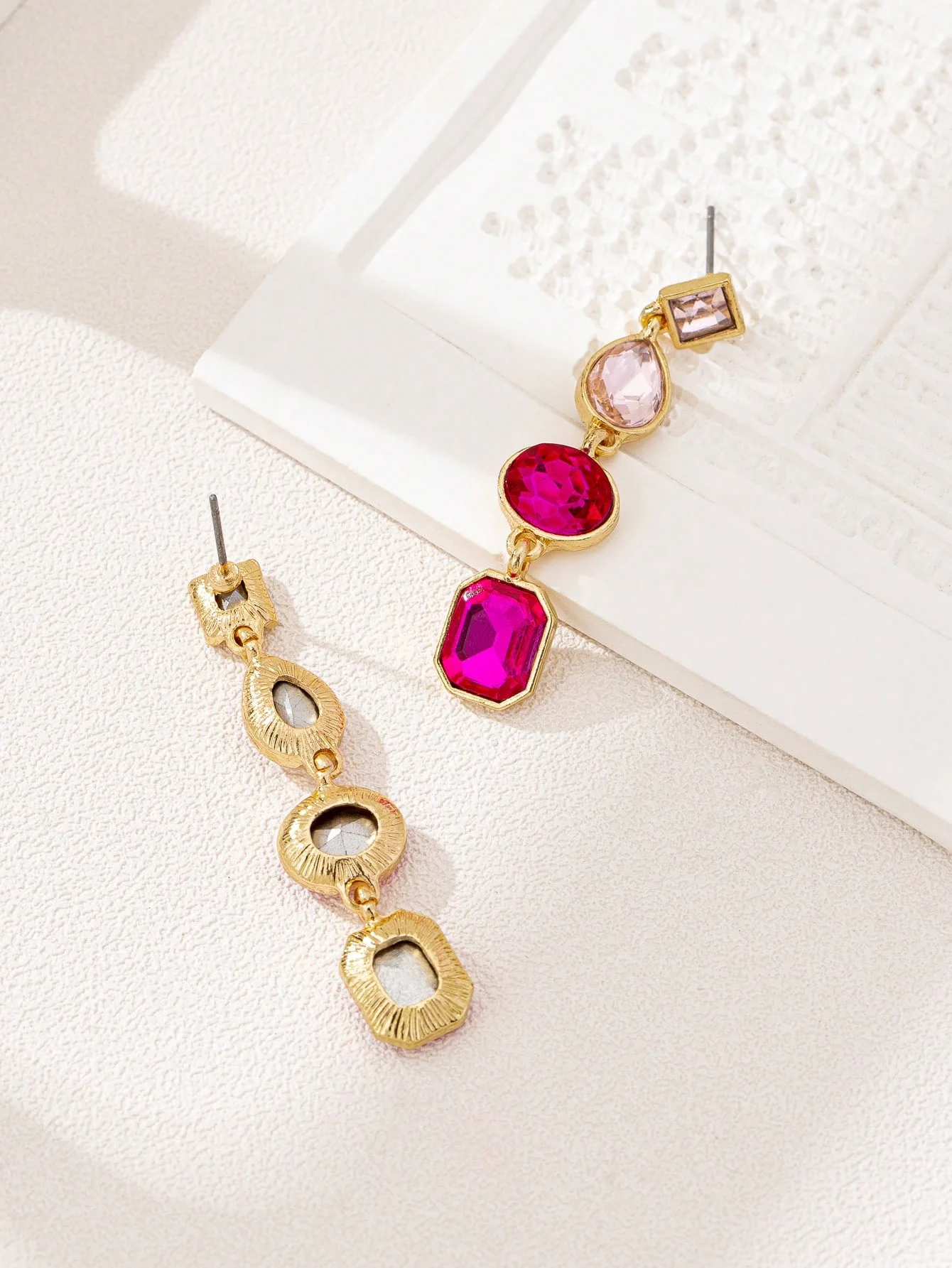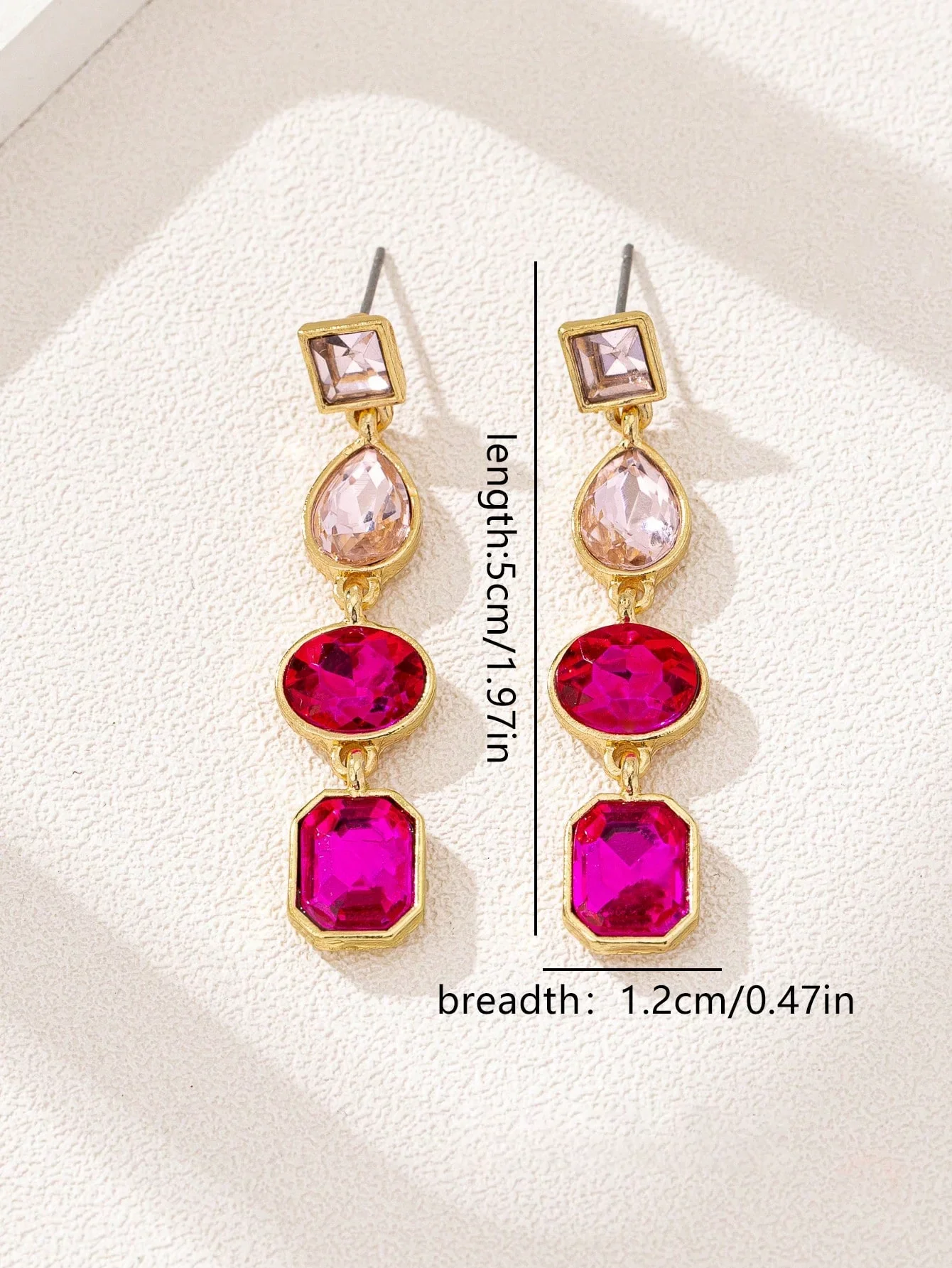 Te zjawiskowe kolczyki ze stali szlachetnej w kolorze złotym to doskonałe połączenie elegancji i nowoczesnego designu. Długie wiszące kolczyki ozdobione geometrycznymi kryształkami w odcieniach jasnego różu i intensywnej fuksji tworzą efektowną kompozycję, która zachwyca kolorowym blaskiem i nadaje się zarówno na co dzień, jak i specjalne okazje.