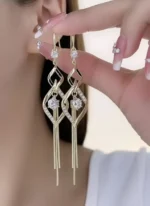 Te eleganckie kolczyki wiszące z cyrkoniami i łańcuszkami to doskonały prezent dla mamy, siostry, przyjaciółki czy partnerki na urodziny, rocznicę, wesele, studniówkę lub inne specjalne okazje – biżuteria, która zachwyci każdą kobietę ceniącą elegancję i wyrafinowany styl.