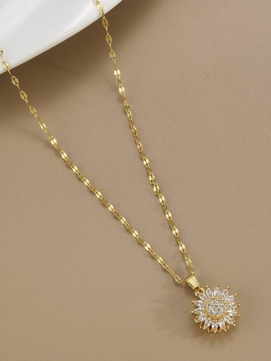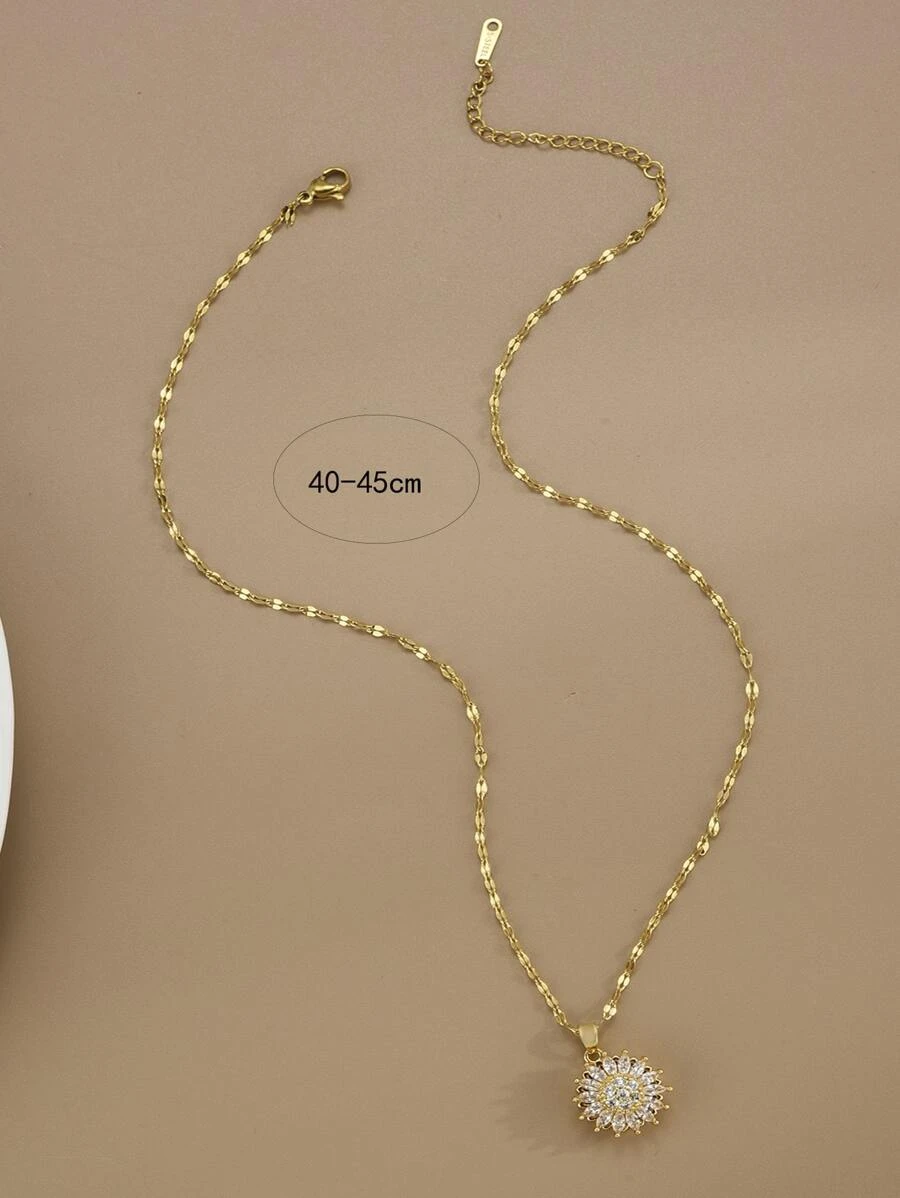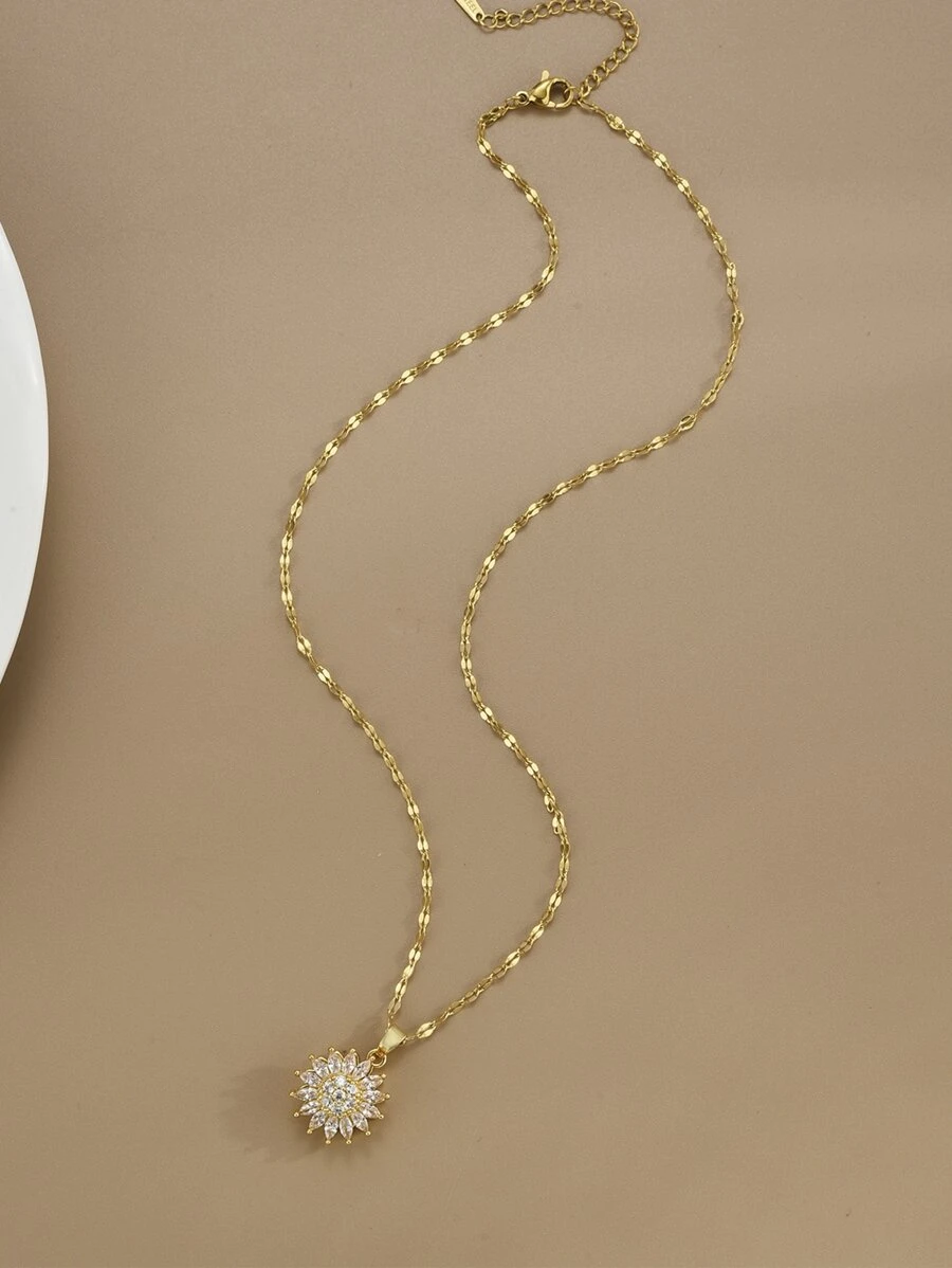 Naszyjnik z kwiatem ze stali nierdzewnej w kolorze złotym