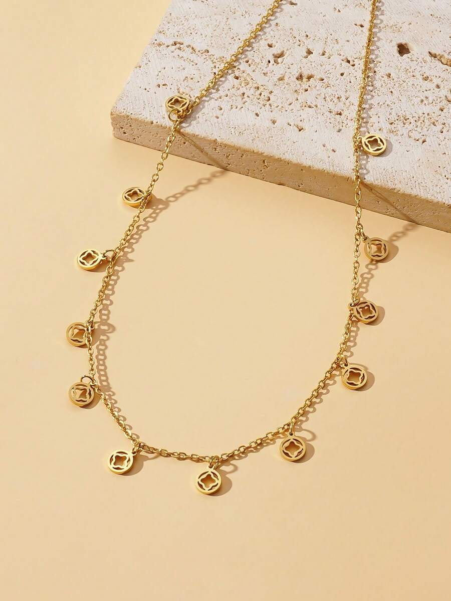 Naszyjnik z zawieszkami Koniczynka regulowany w kolorze złotym