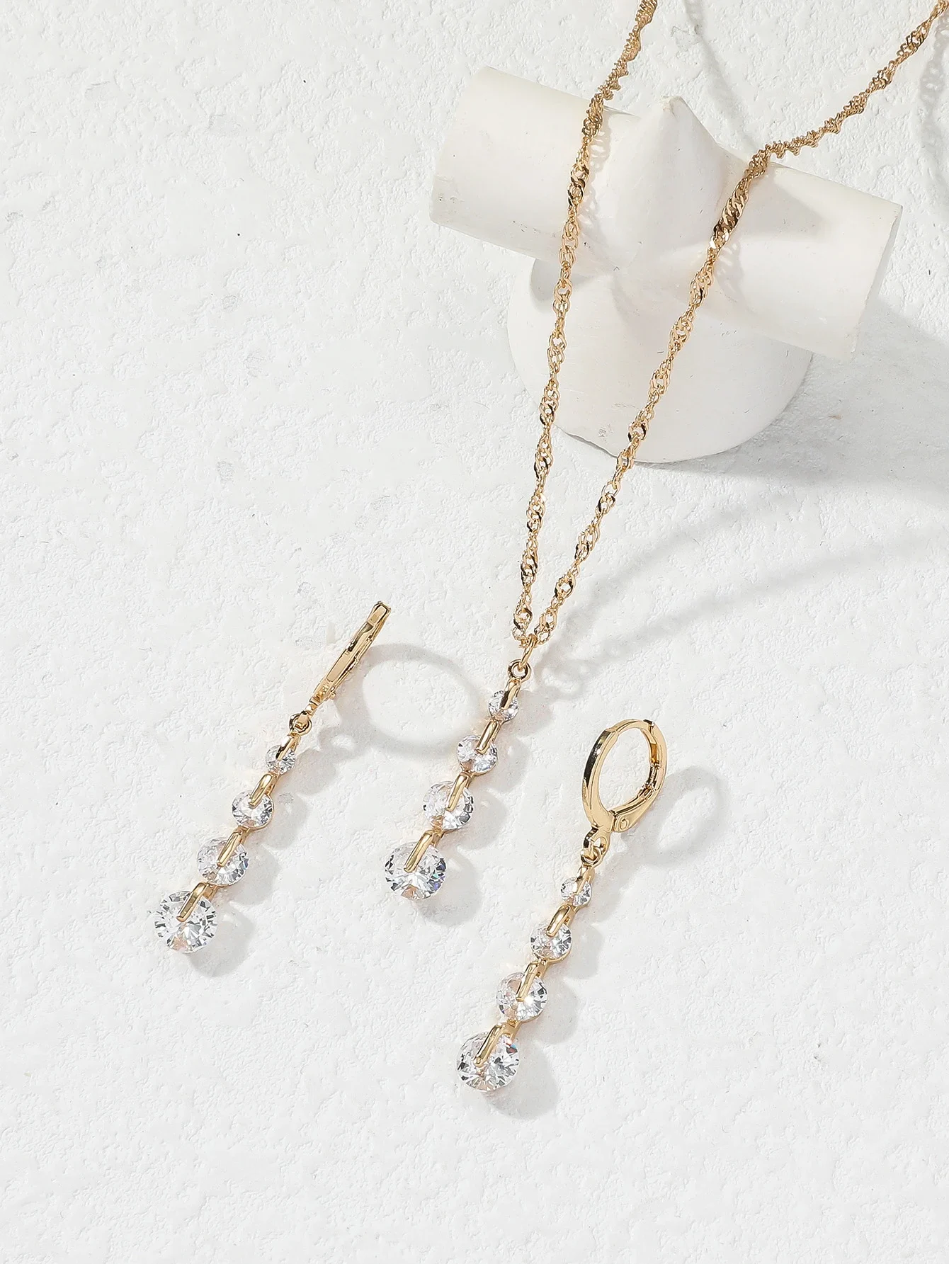 - Naszyjnik z zawieszką z cyrkoniami – delikatny wisiorek z lśniącymi kamieniami idealnie komponuje się z kolczykami, tworząc harmonijną całość