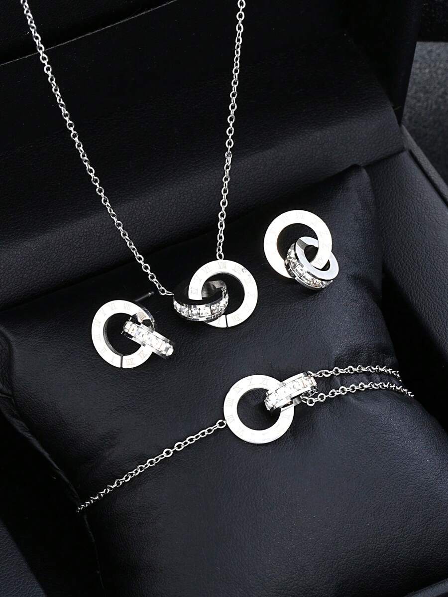 ❤️ Zestaw Kolczyki Naszyjnik Bransoletka z zawieszkami srebrny kolor