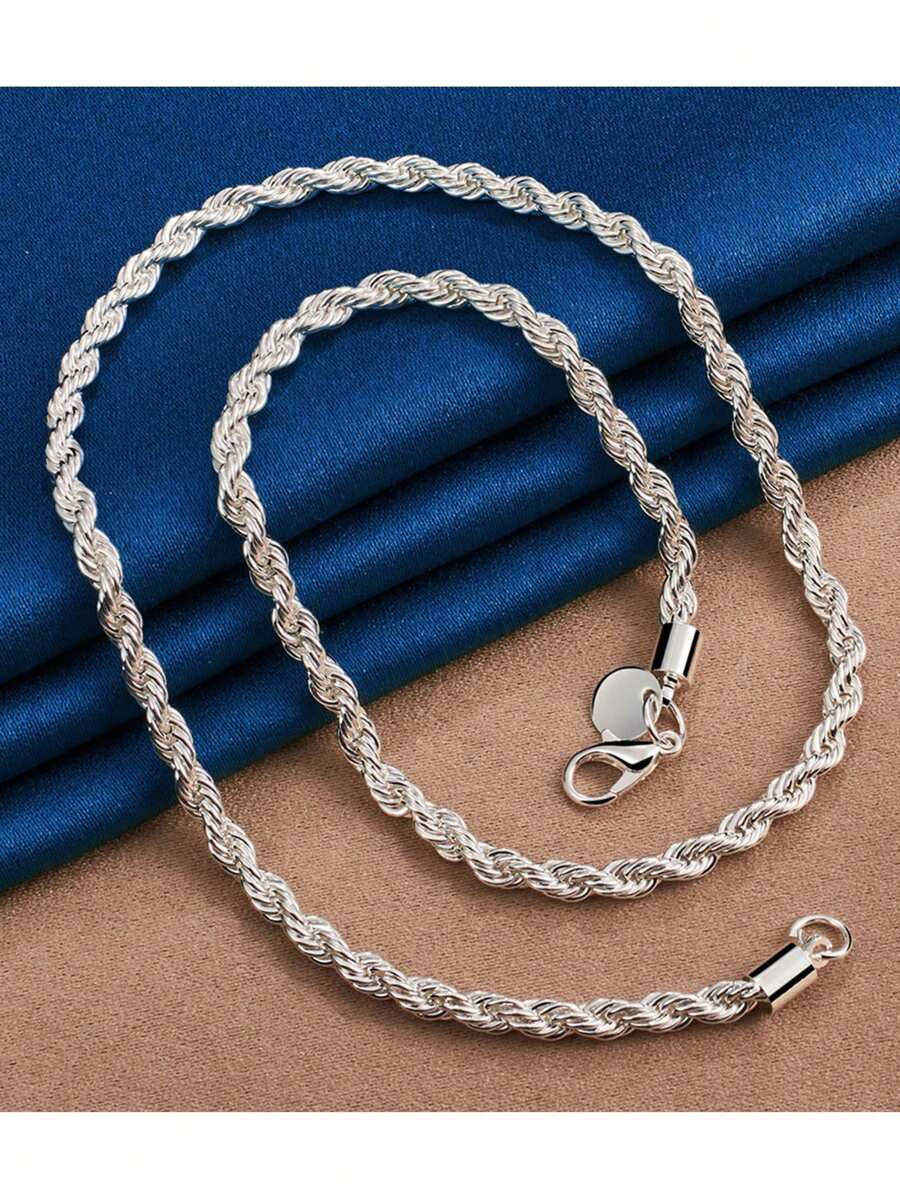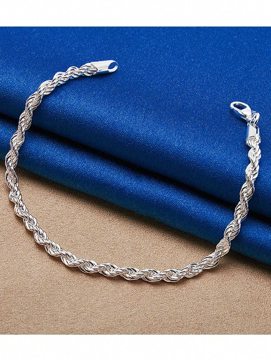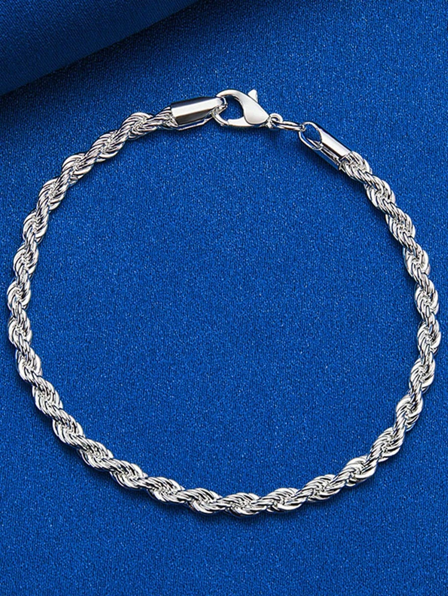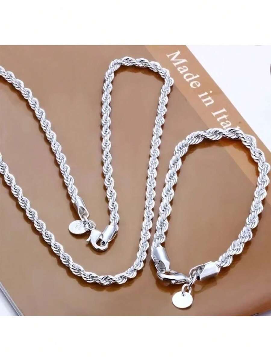 ❤️Zestaw Łańcuszek i Bransoletka platerowany srebrem 925 wzór Kręcony – Blask i Elegancja w Komplecie