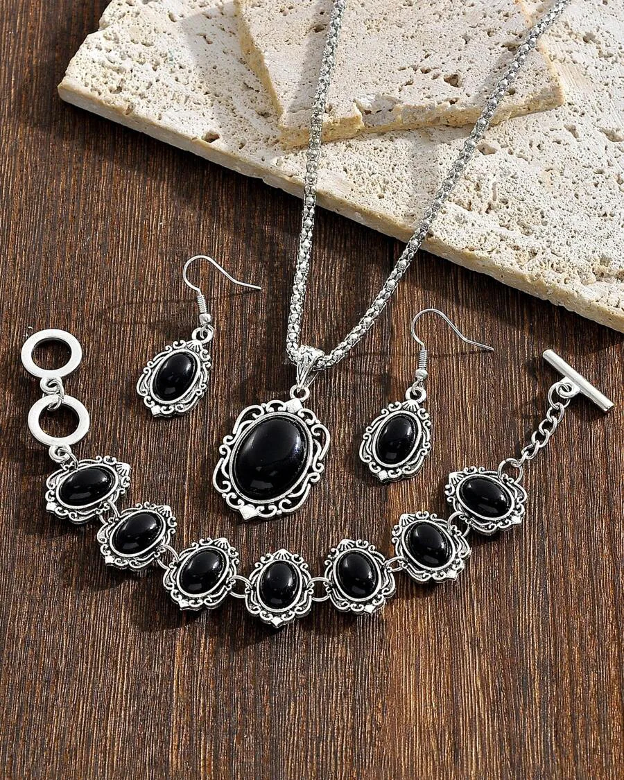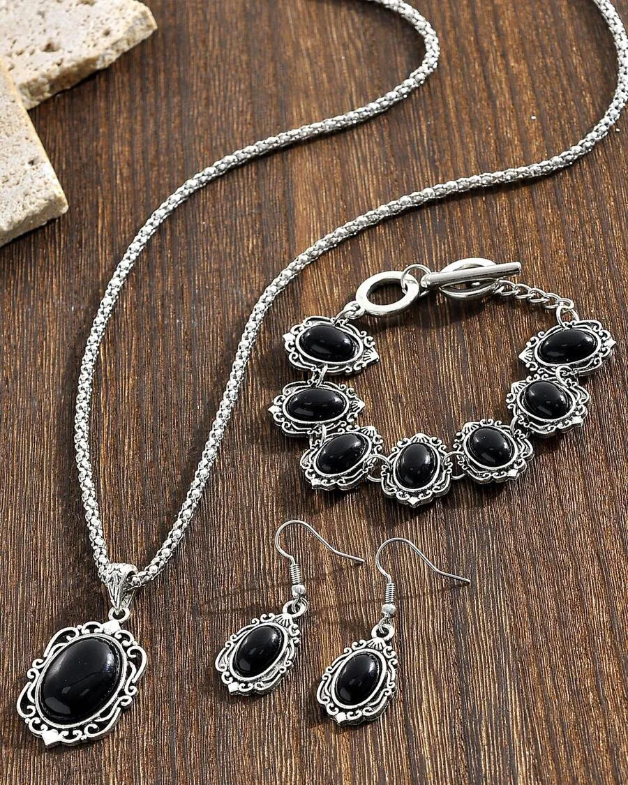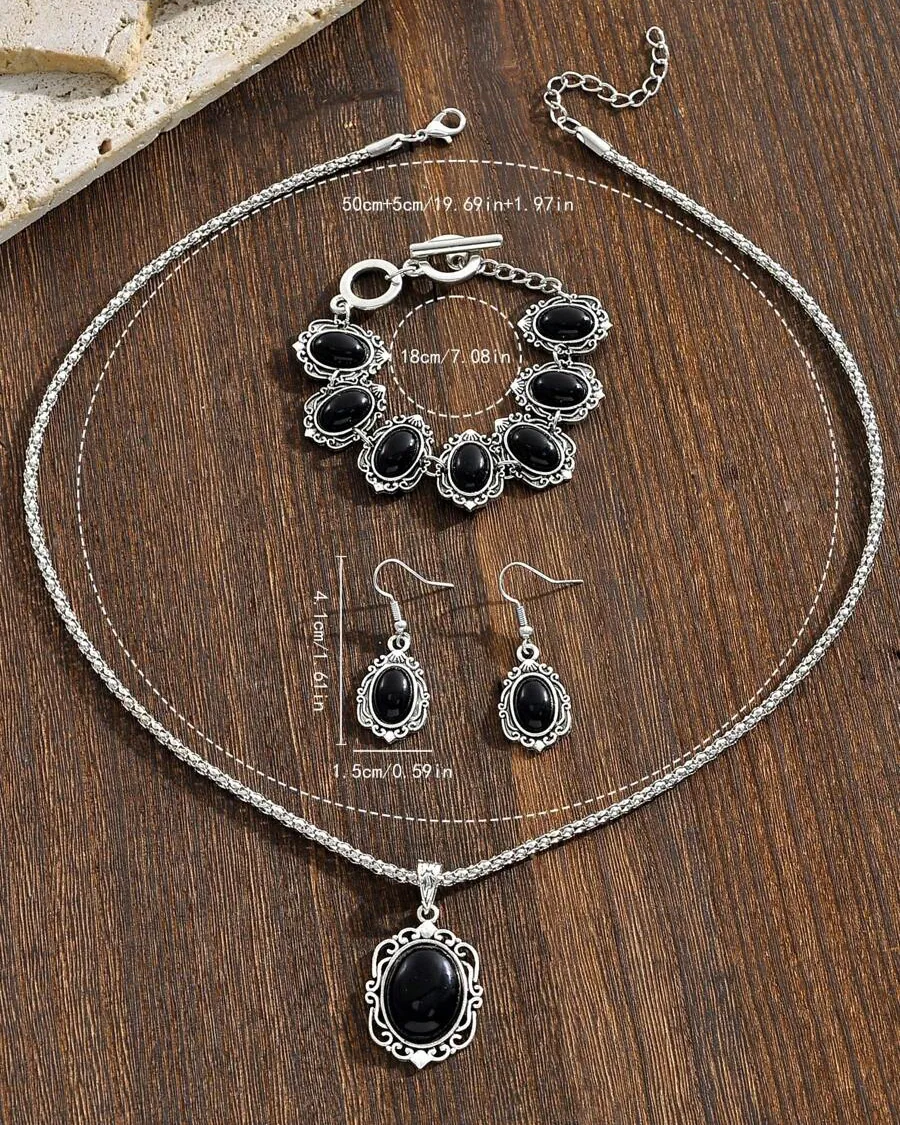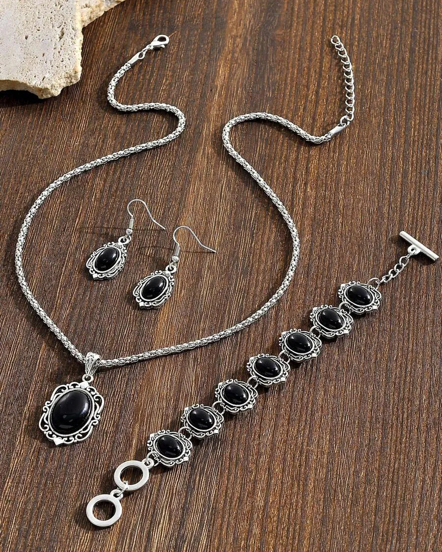 Mroczna Elegancja Vintage: Srebrny Zestaw z Czarnym Onyksem